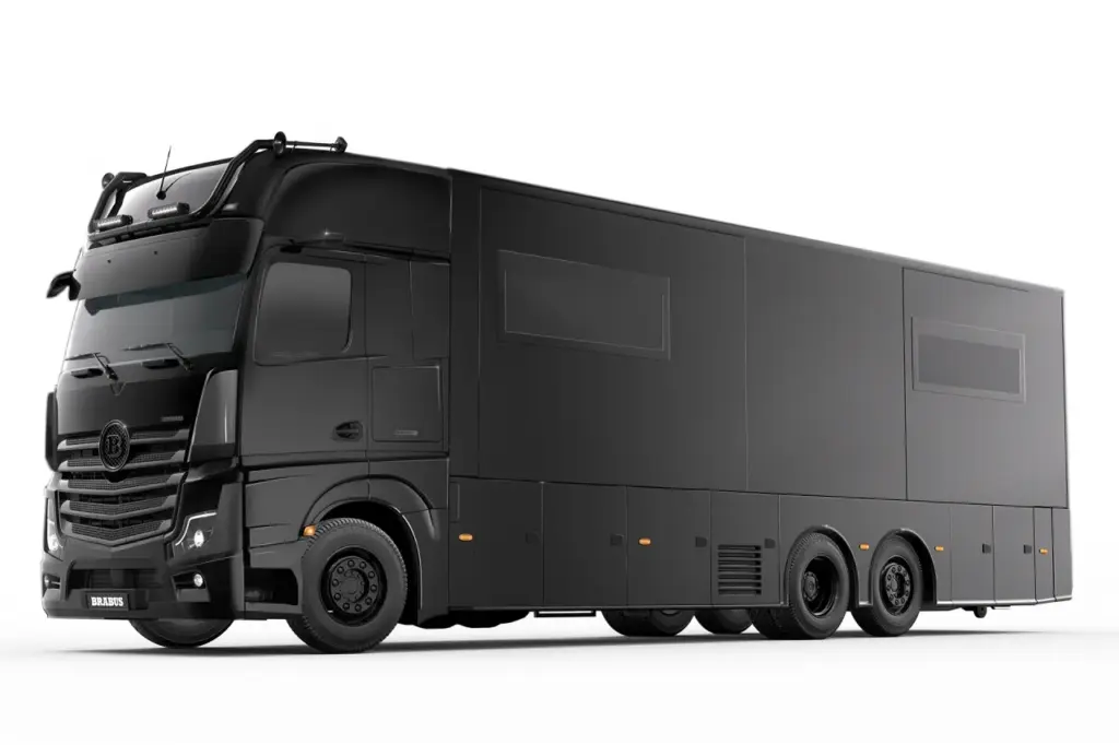 That space has been filled accordingly, with a full kitchen, a granite-trimmed bathroom, and a huge bedroom that even includes a writing desk and a built-in PlayStation 5. Power comes from a 12.8-liter six-cylinder turbodiesel producing more than 500 horsepower. Unsurprisingly, all that excess comes at a price reportedly around $1.5 million.