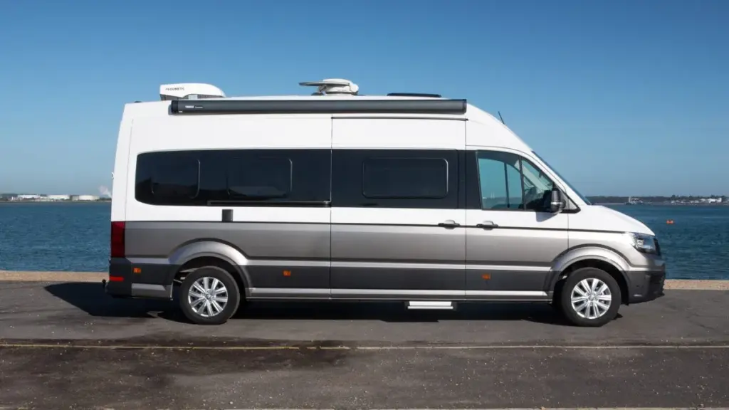 Beyond that, it still includes the features buyers expect from a modern camper van: a kitchenette, an entertainment and lounge area that converts into a double bed, and a full-width wet bath. It is a practical choice for travelers who want independence without giving up too many everyday comforts.